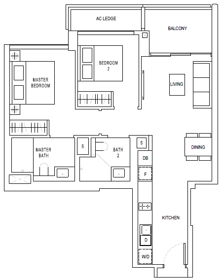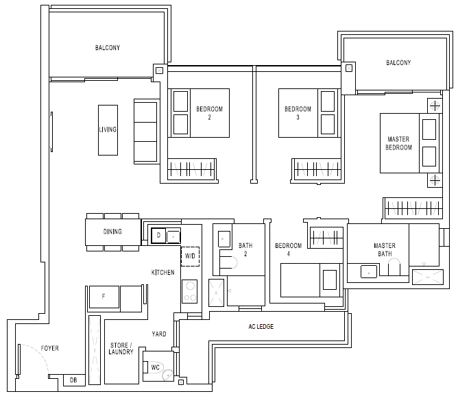| 2 Bedroom (D) | 958 - 1163 | 94 |